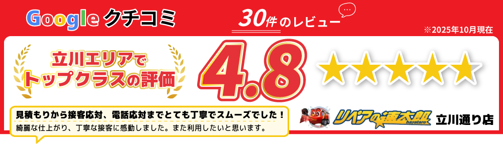 立川市・国立市・東大和市・東村山市・武蔵村山市・昭島市・小平市・国分寺市エリアのお客様が安心できる修理を心がけております!